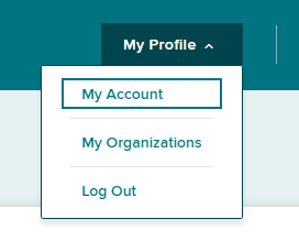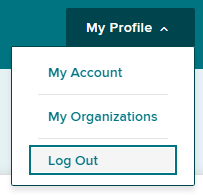 Use the My Profile drop-down menu to select either My Account, My Organizations, or Log Out.