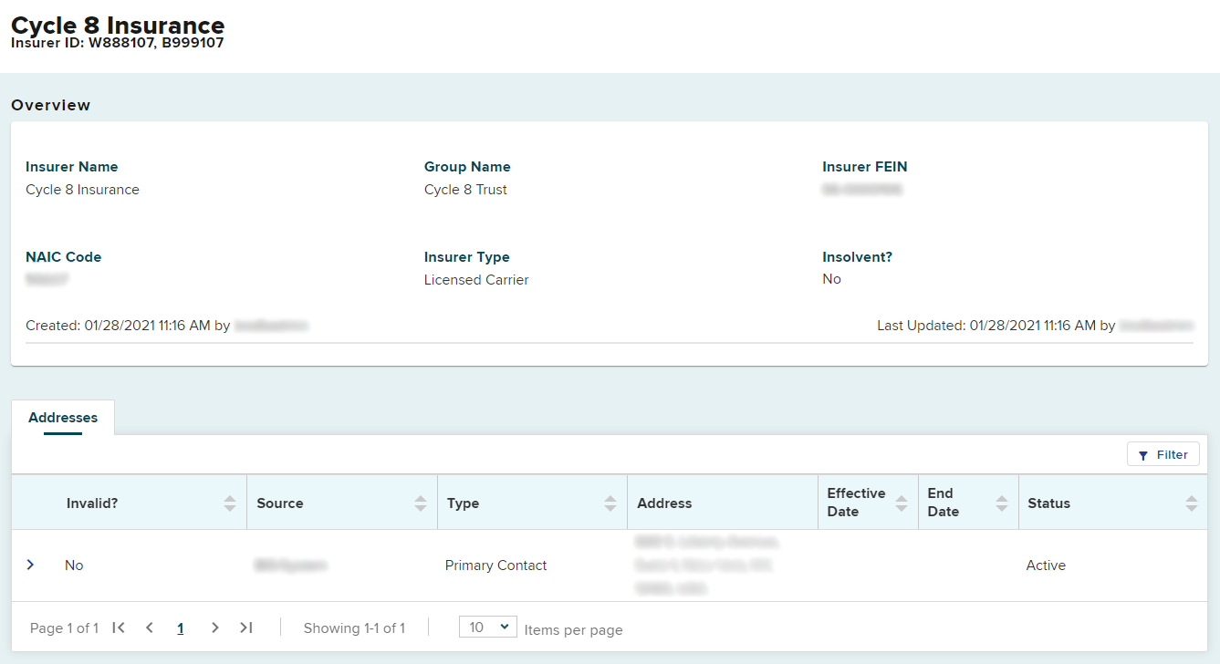 If you select the name of the organization, additional details will show. In the lower section, you can view your organization's addresses.