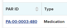 - Medication – If the PAR type is medication, this column will show the medication name and strength, if applicable. For all other PAR types, this column will be blank.