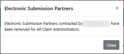 Select 'Close'. You have now successfully removed that Electronic Submission Partner from all insurers in your profile.