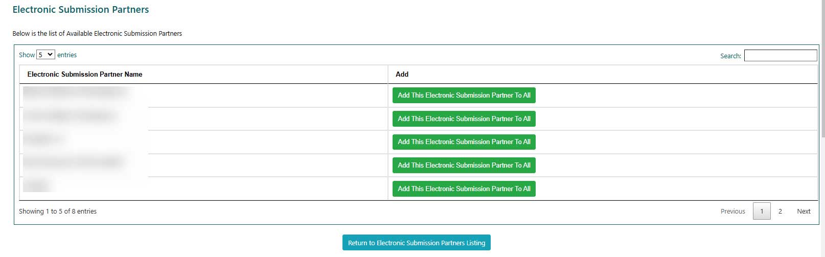 If you wish to add an Electronic Submission Partner to all insurers in your profile, select 'Add Electronic Submission Partner to All'.