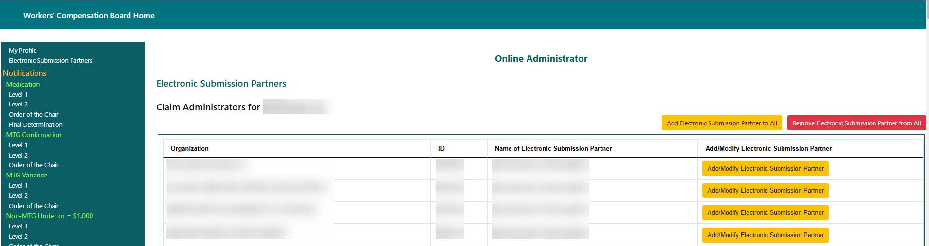 If you wish to add or modify an Electronic Submission Partner for a specific insurer, select 'Add/Modify Electronic Submission Partner.'