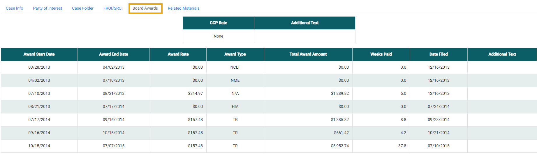 This tab lists all awards made by the Board via Administrative Determination, Proposed Decision, and Notice of Decision.