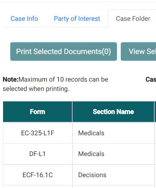 Select the Case Folder tab. Review the forms in the Case Folder to ensure that the document you want to upload does not already exist. Do not create a duplicate submission.