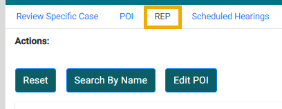 Use the REP tab to add a representative as a party of interest for all cases in a specified district or statewide.
