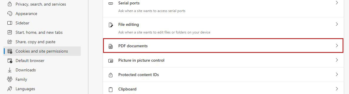 - Scroll down to PDF documents and select it.