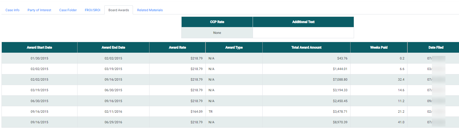 The Board Awards tab in eCase also displays awards that the Judge has made.