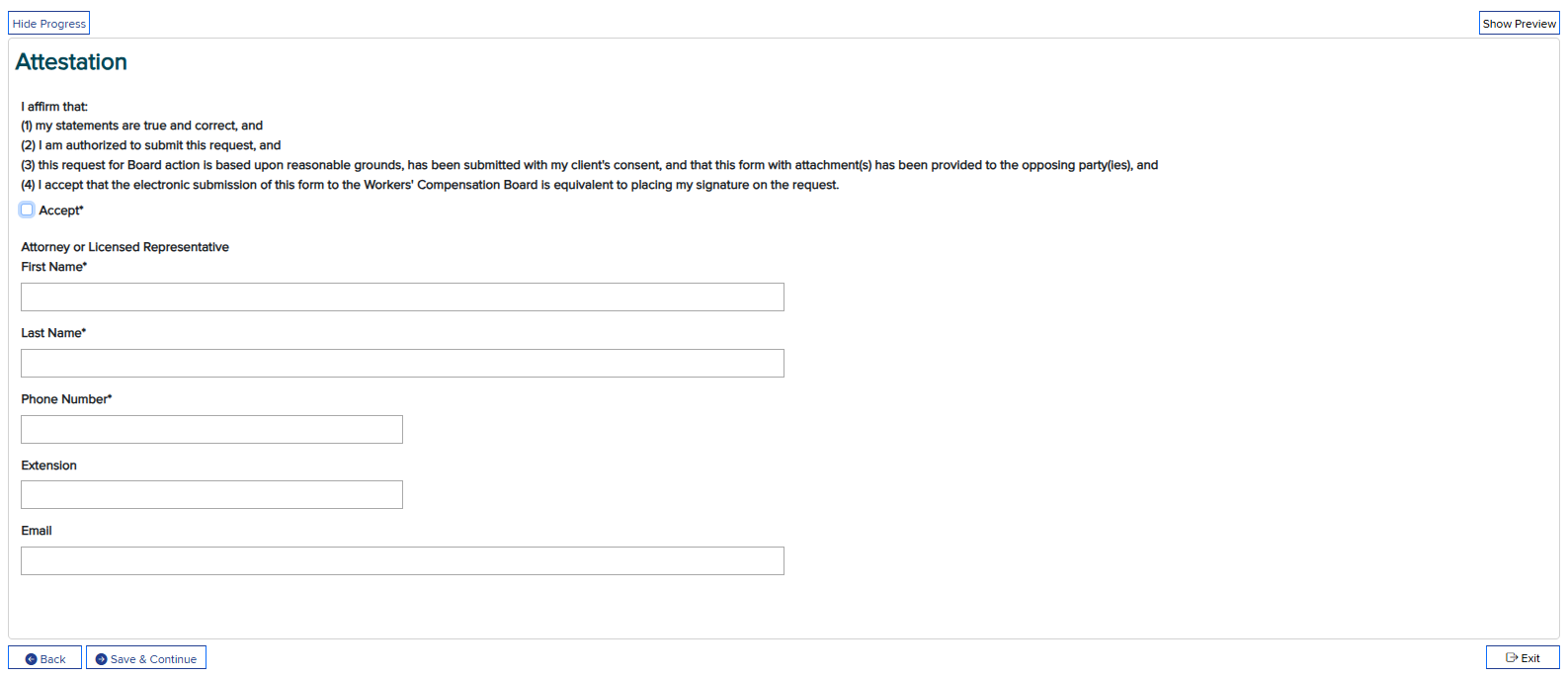 If an attorney fee is being requested in relation to the issue raised on the RFA-1LC, select the option "Attorney or Licensed Representative fee requested" under the Additional Proposed Findings step and upload/reference your Application for Fee by Claimant's Attorney or Licensed Representative (Form OC-400.1) with the eForm submission.