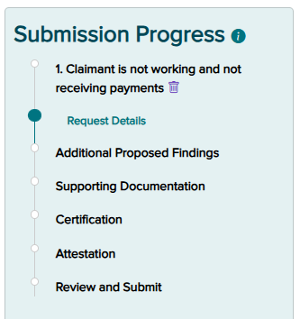 If a request reason was selected in error, select the trash can icon displayed in the Submission Progress panel. This will delete the request reason and return you to the list of reasons.