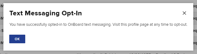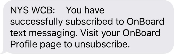 After opting to receive text message notifications from OnBoard, users will receive the confirmation text message seen below.