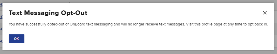 If you unchecked Text Messaging Opt-in to no longer receive text message notifications, a pop-up confirmation message will appear.