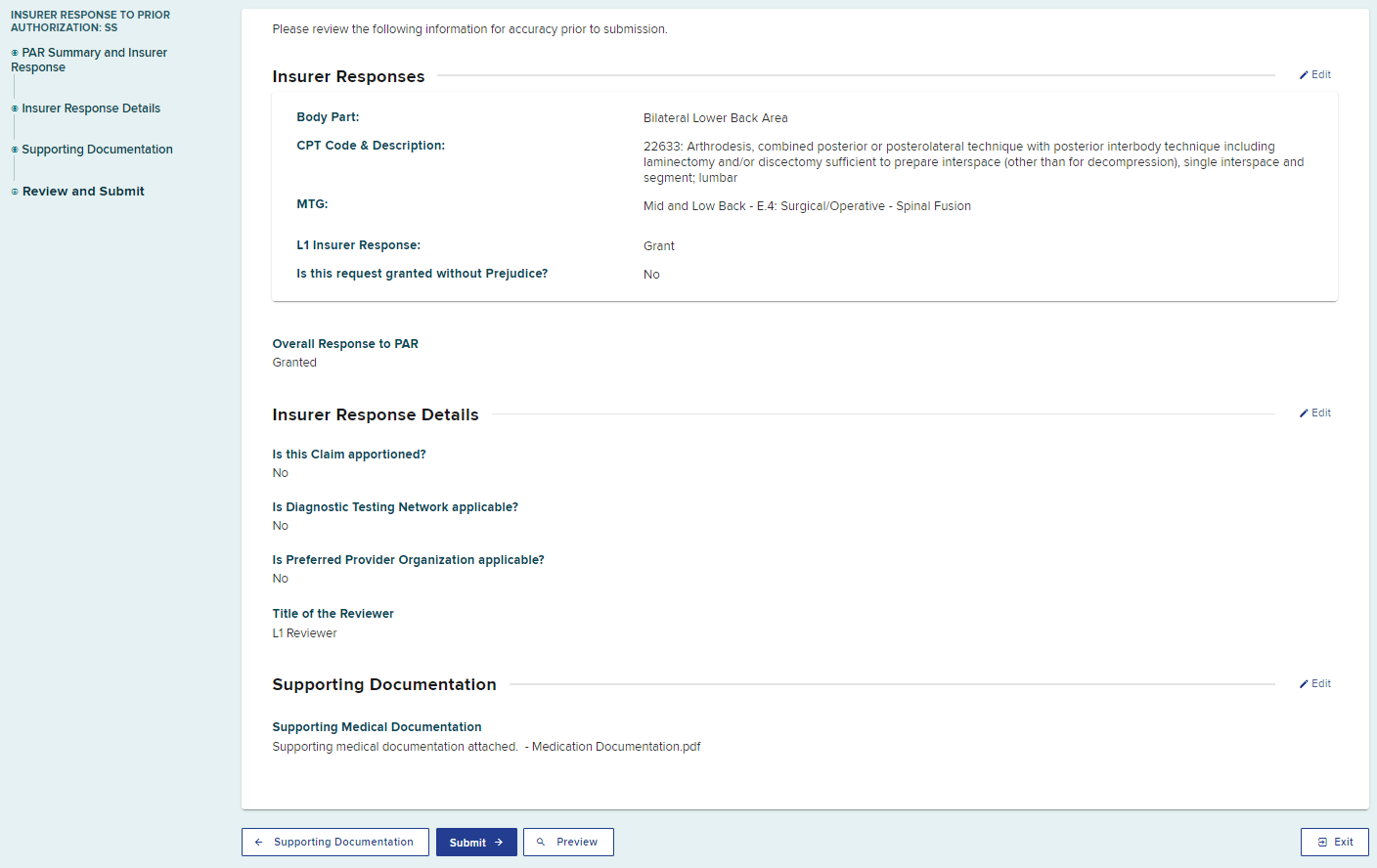 Review all sections of the PAR details, including the Request Details which shows the Level 1 response details, Documents uploaded by the health care provider or Level 1 reviewer, Correspondence History, etc.