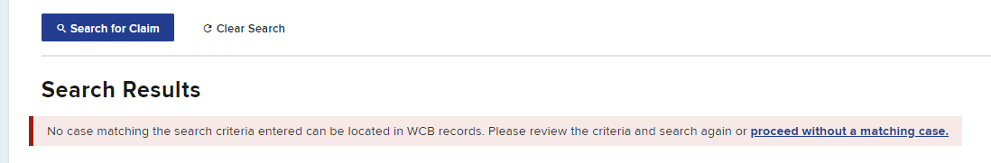 When a claim is matched to the search information, search results will be displayed, and you may continue with your request.