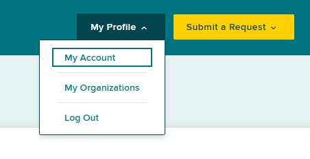 Use the My Profile drop-down menu to select either My Account, My Organizations, or Log Out.