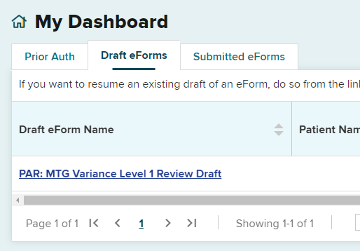 If a delegated user drafts a PAR but needs the provider to review and submit it themselves, the delegated user's saved draft will be added to the Draft eForms queue for the provider and their delegated users.