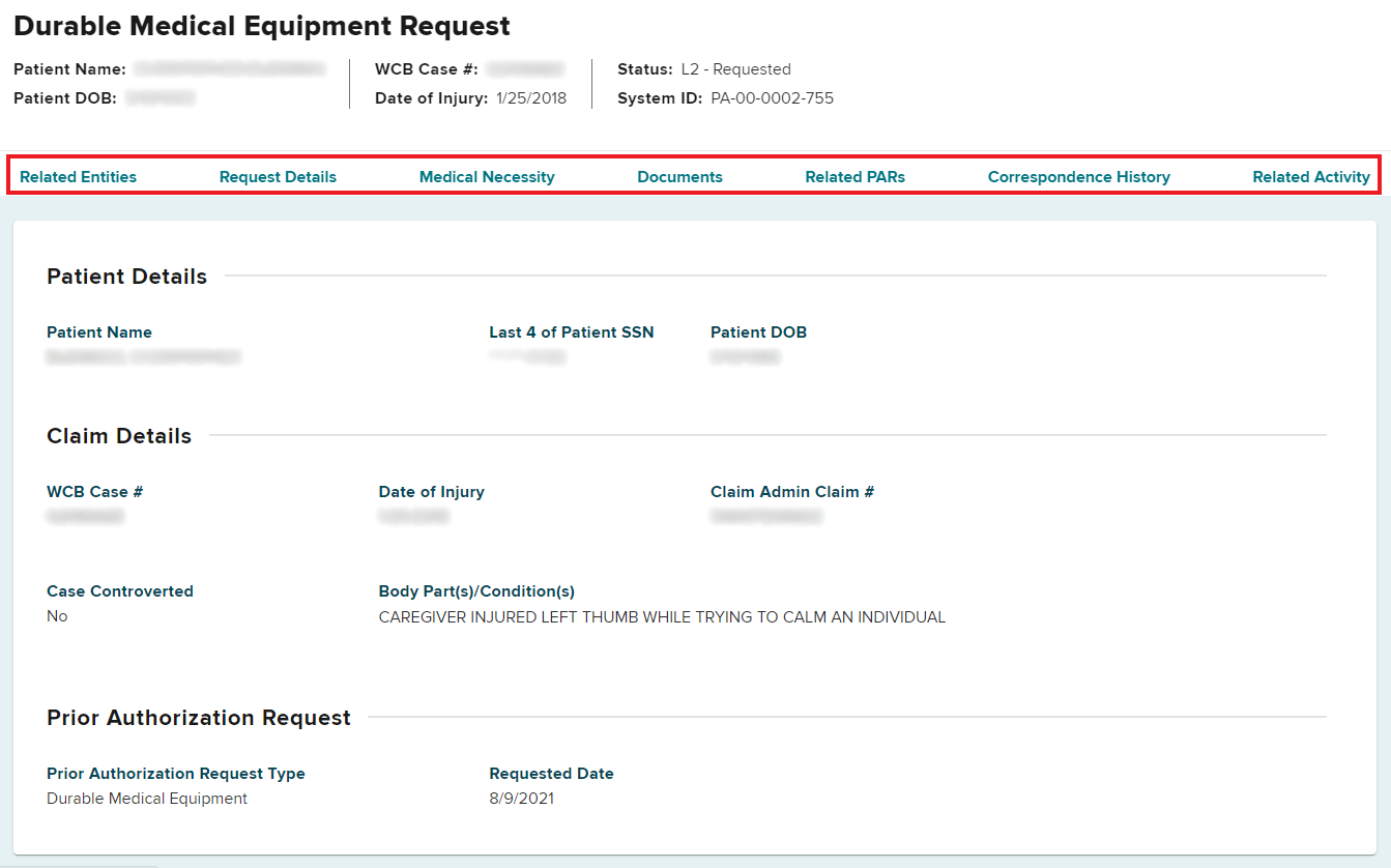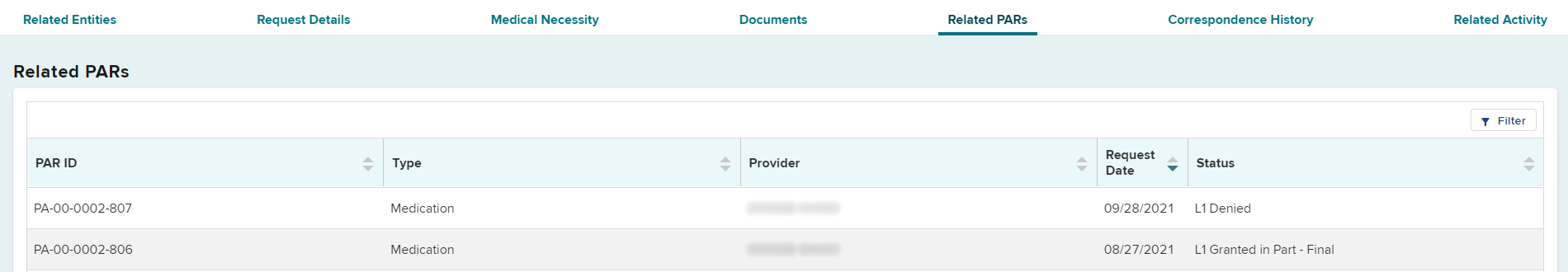 Related PARs will show any prior authorization request that has been submitted on the same claim.