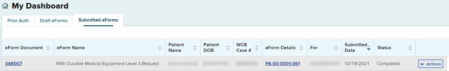 After the PAR is submitted, the PAR will move to both the Submitted eForms tab and the Prior Auth Active tab.