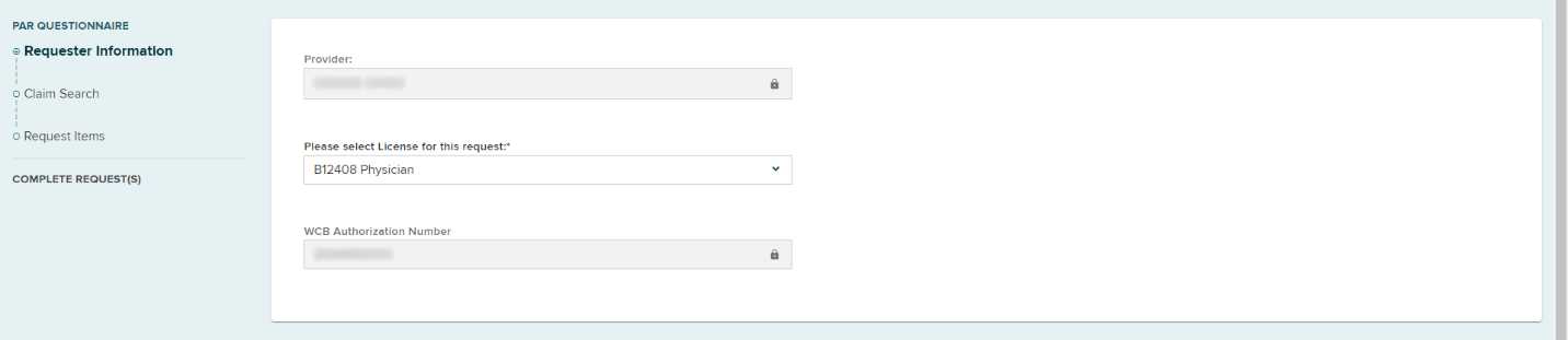 A provider's name will be selected automatically if they are submitting on their own behalf, or if a user is only delegated to submit requests on behalf of one health care provider. If a delegated user submits requests for multiple providers, they must select the provider's name from a list of providers.