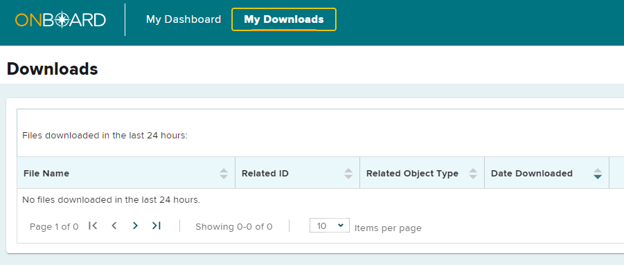 Any document that you have downloaded within the last 24 hours will be available in the My Downloads section of your dashboard. Select My Downloads at the top of your dashboard. To download the document again, select the File Name link. To see the health care provider organization information, select the Related ID link.