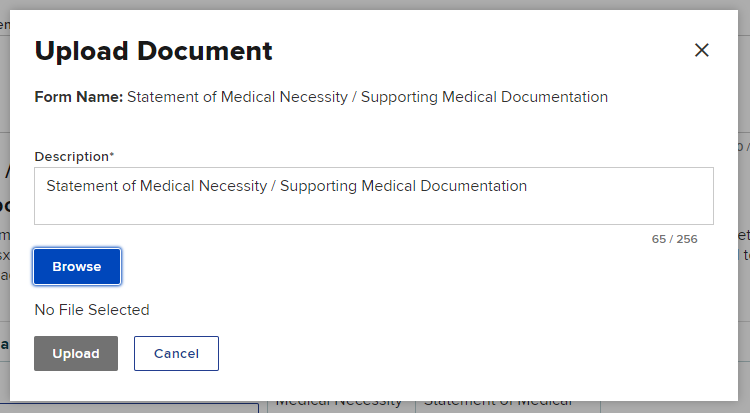 - Select the Upload button to upload the document