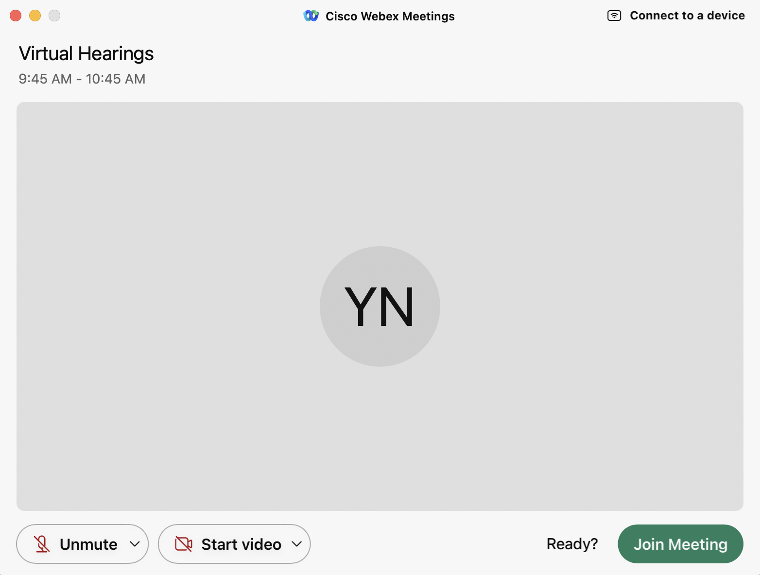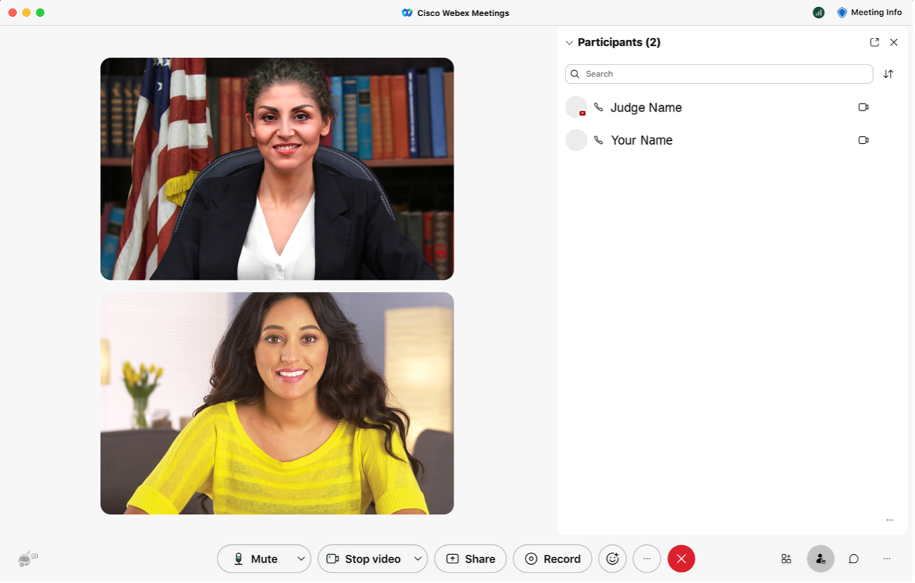 - Test your computer or mobile device at least two days before your hearing: Webex Test Meeting.